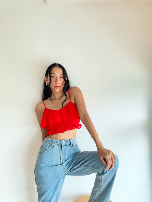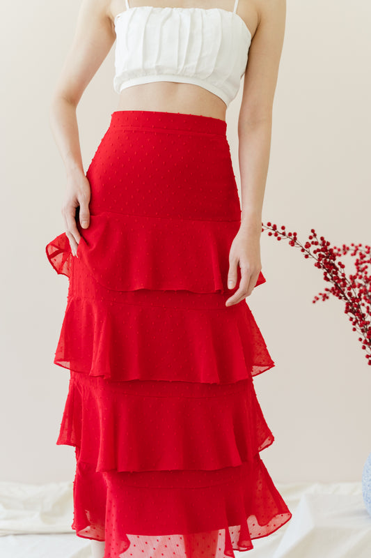 Kyra Ruffled Skirt in Scarlet