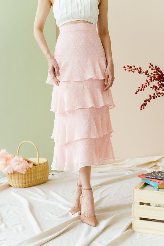 Sold outKyra Ruffled Skirt in Dusty Pink