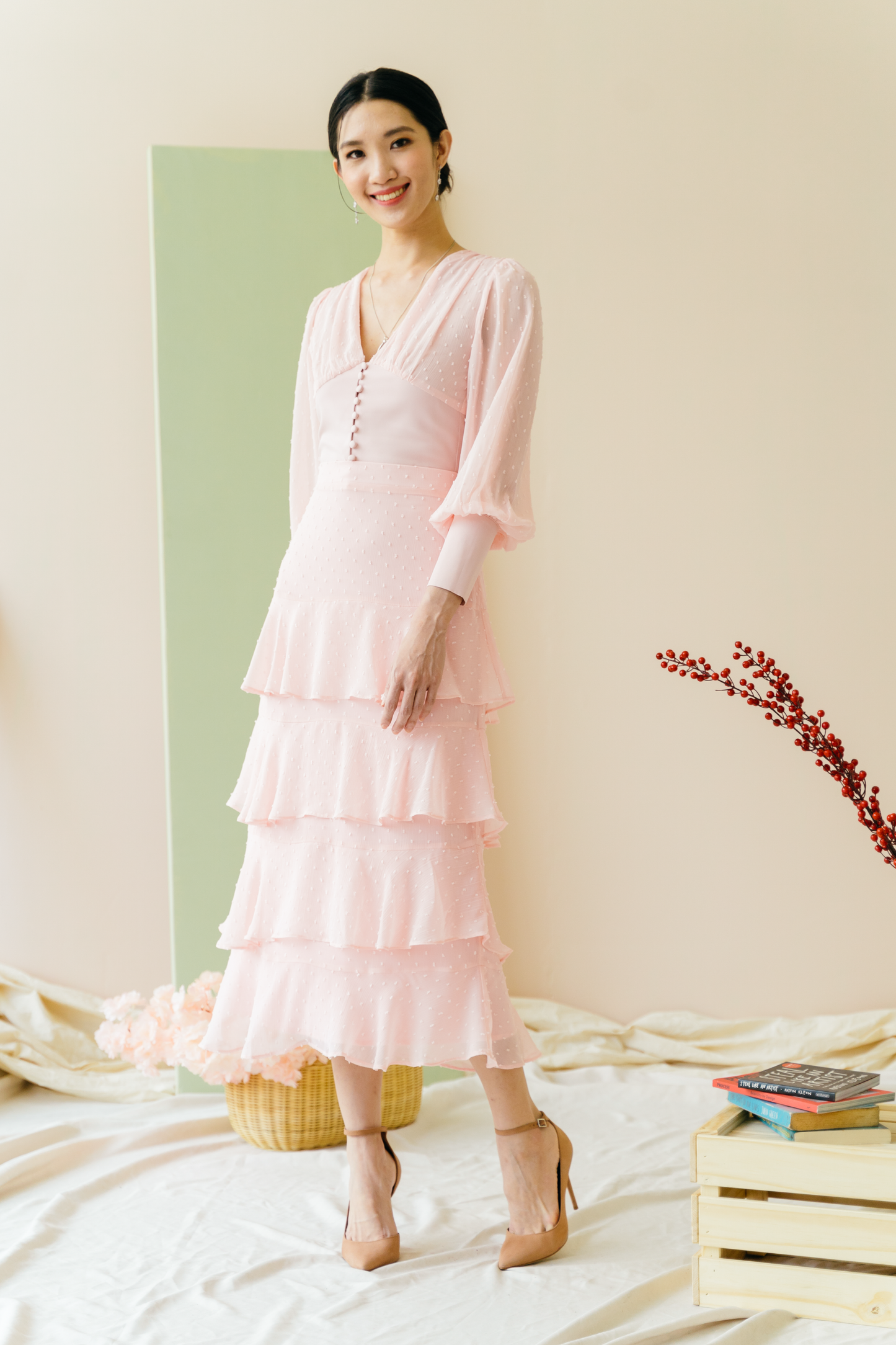 Channel your leading lady energy with the Kyra Blouse. The combination of bodice and Swiss Polka-Dot fabric create a dreamy essence; complemented with a V-Neckline button down along with structured puffy sleeves merging into a solid button placket cuff for that #GIRLBOSS look. Of course, smocked back for functionality and easy access!